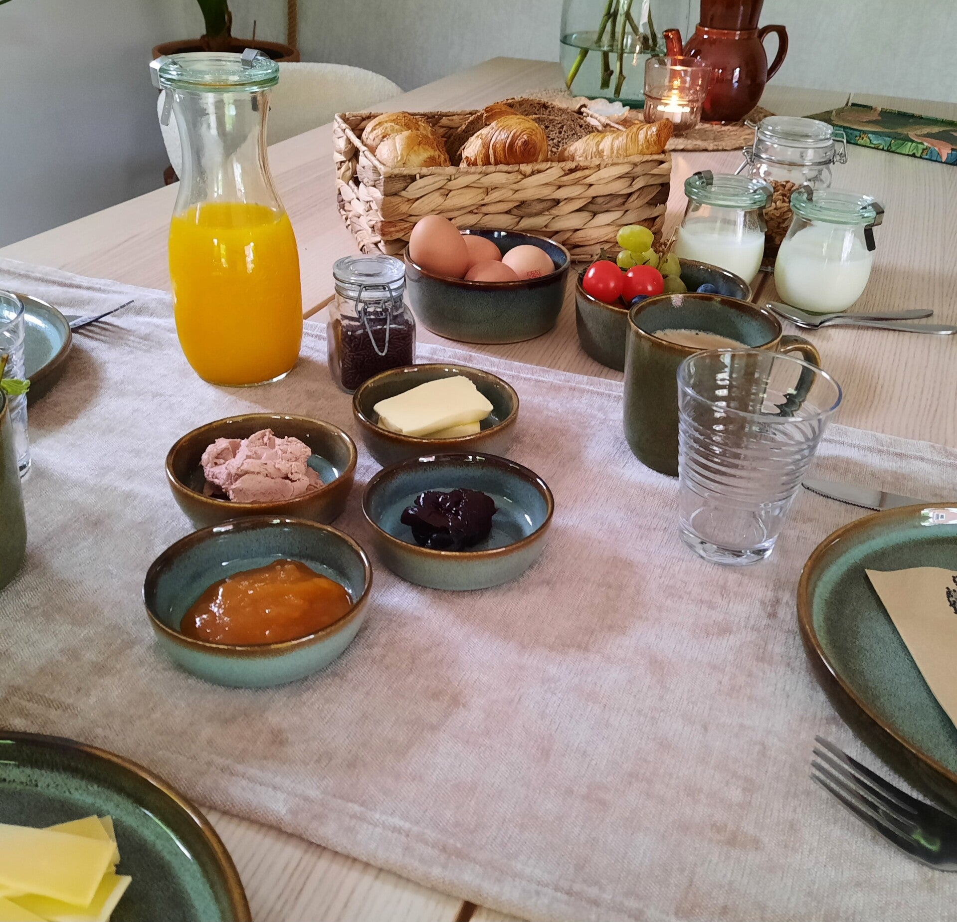 Het hele jaar verzorg ik in de ochtend een uitgebreid biologisch en vegetarisch ontbijt in het tuinhuis met zoveel mogelijk producten uit eigen tuin of omgeving. Tevens is het mogelijk om in de avond een warme maaltijd te bestellen die in het tuinhuis geserveerd wordt (20,00 pp.)